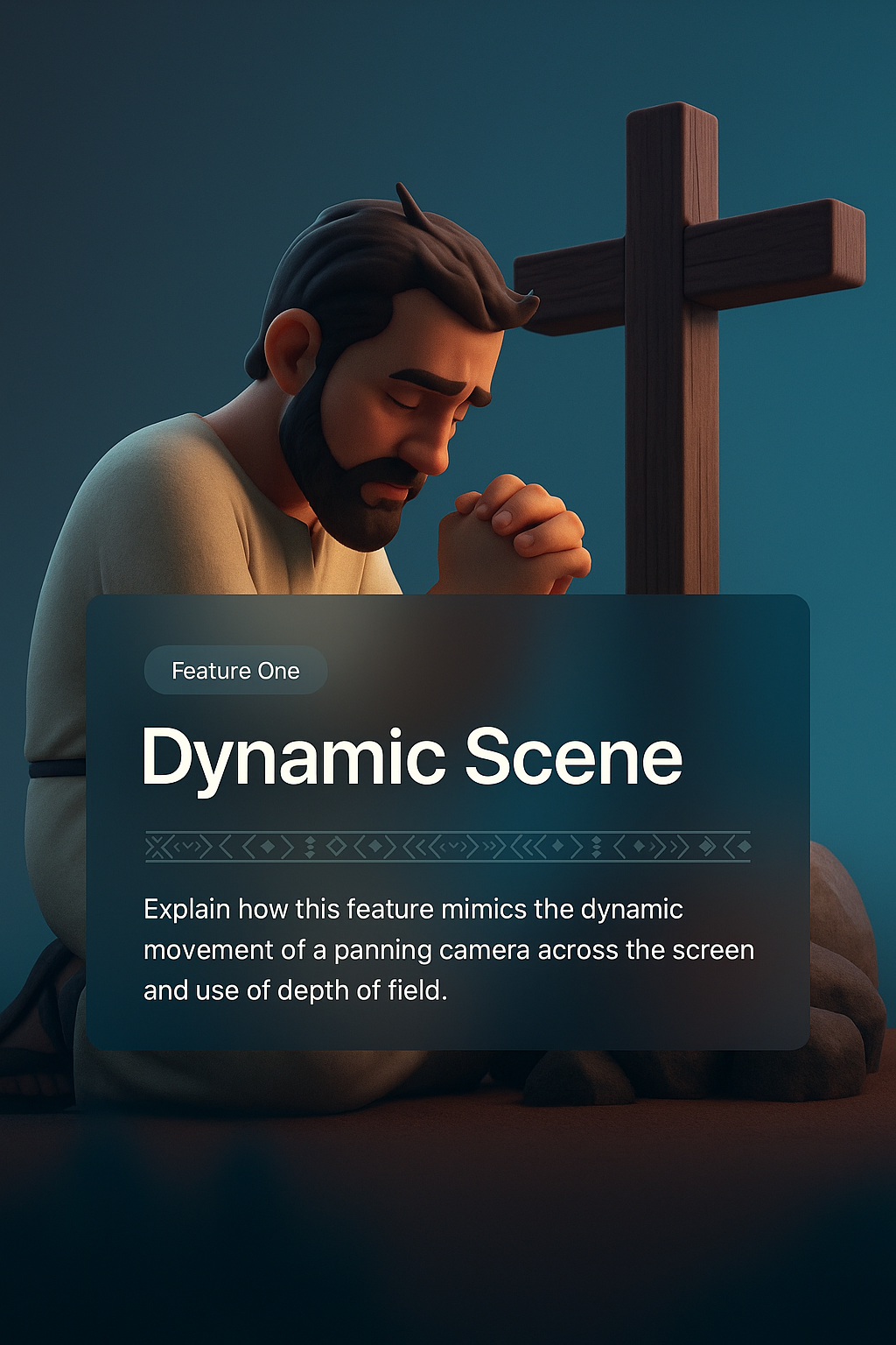 Christian Man Praying Before the Cross in a Dynamic Scene