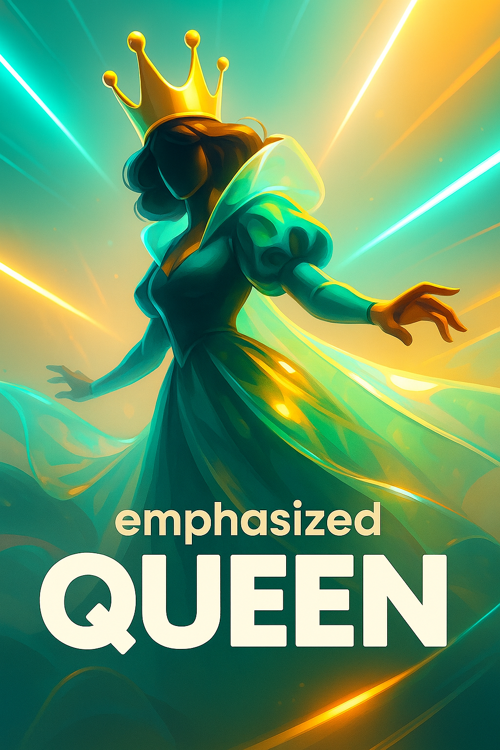 /Collection: /by davooda/Type: PNG/A vibrant illustration of a queen figure surrounded by neon lights and dynamic elements. The scene features glowing accents in deep greens and iridescent blues, creating a striking visual impact.