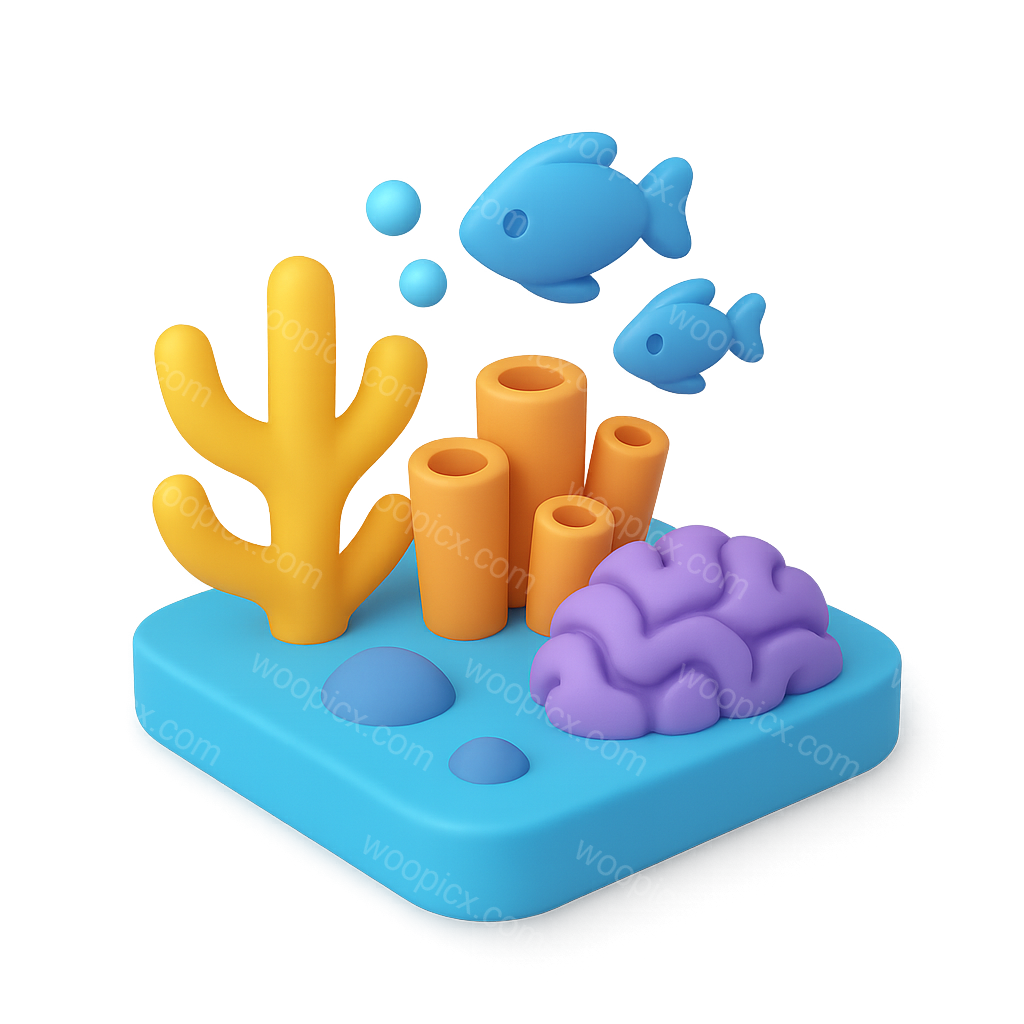 Colorful 3D Reef Icon with Coral and Sea Elements