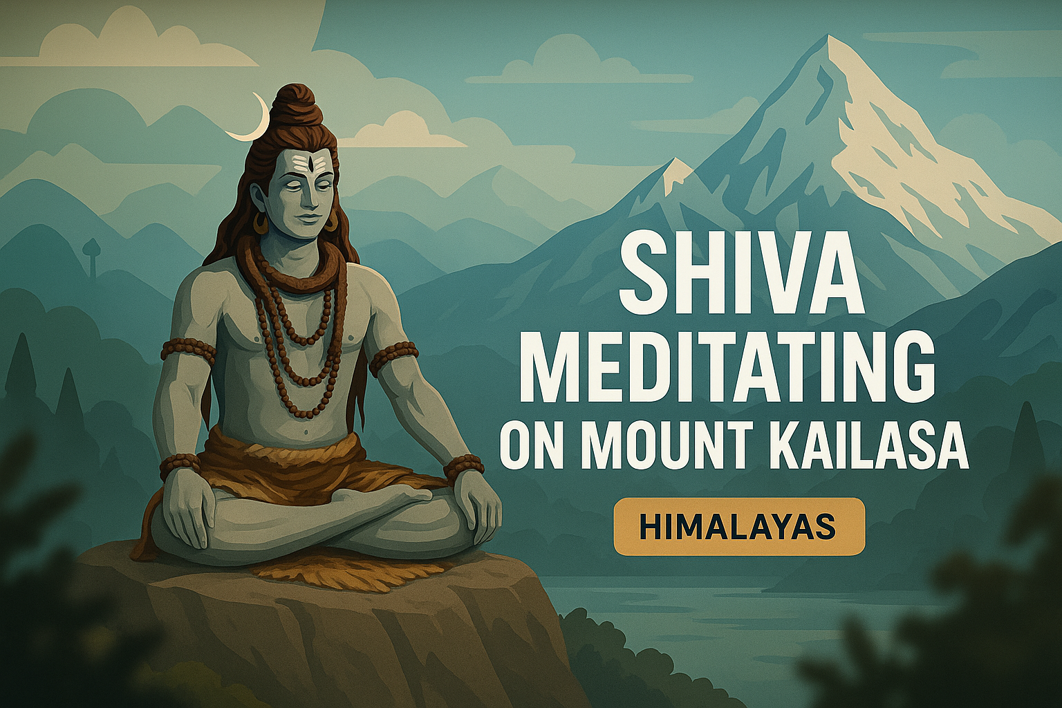 /Collection: /by davooda/Type: PNG/A serene illustration depicting Lord Shiva meditating on Mount Kailasa, surrounded by majestic Himalayan mountains. Ideal for spiritual or cultural content.