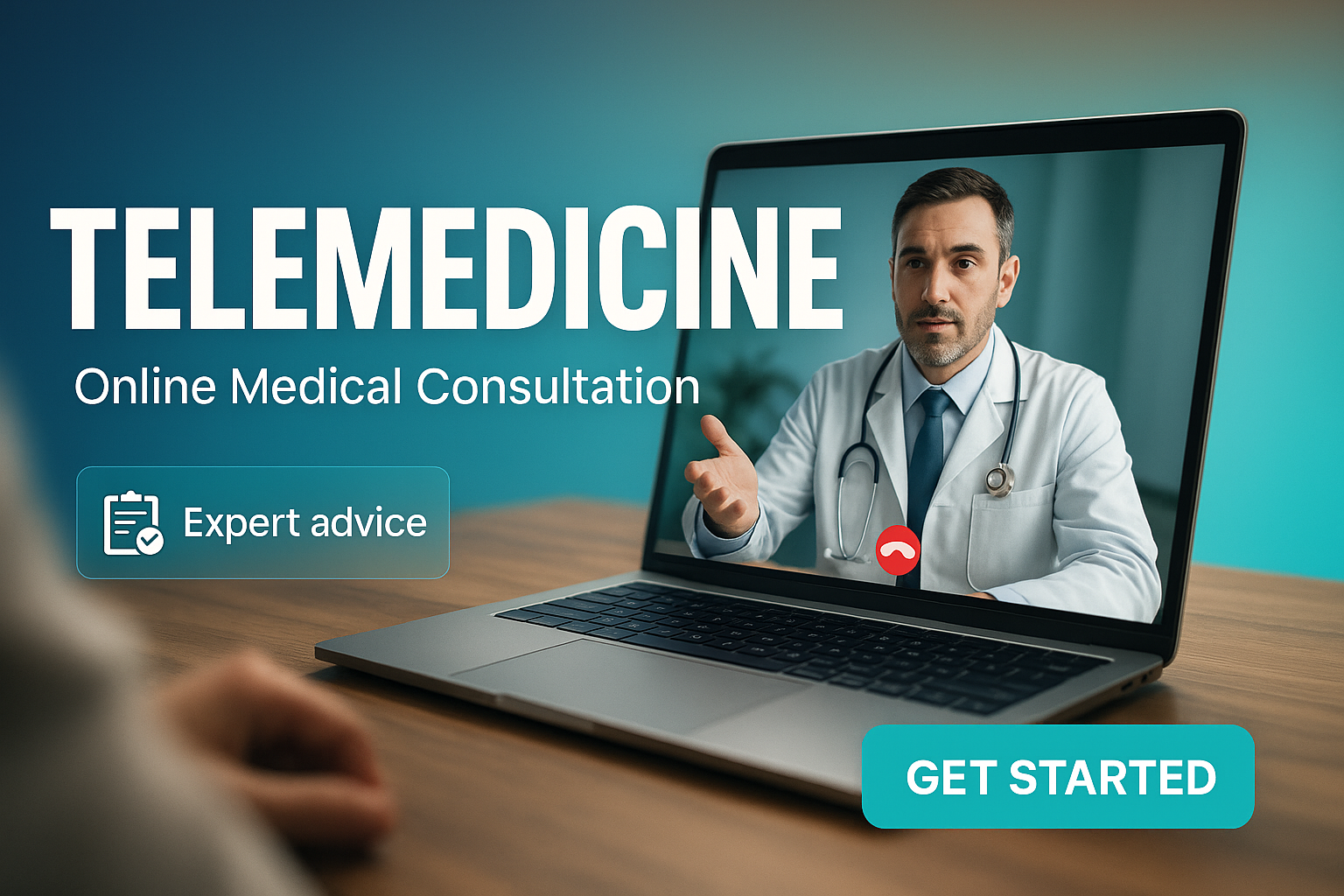 Telemedicine Promotional Graphic Featuring Online Consultation