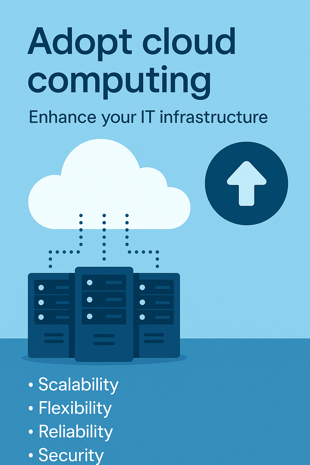 Modern promotional graphic highlighting the benefits of cloud computing with a clean design, targeting IT professionals and businesses looking to enhance their infrastructure.