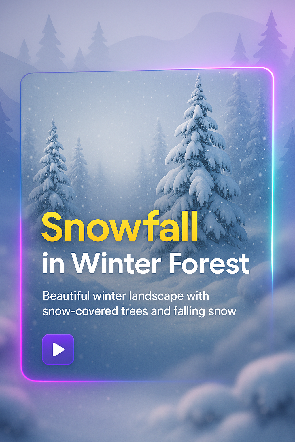A tranquil winter scene featuring snow-covered pine trees and gentle snowfall, designed as a calming visual suitable for winter-themed projects or media.