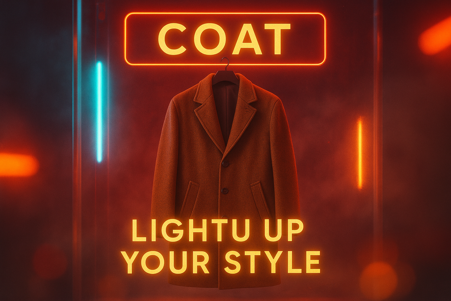 Stylish Neon Coat Ad Featuring Comfort and Elegance