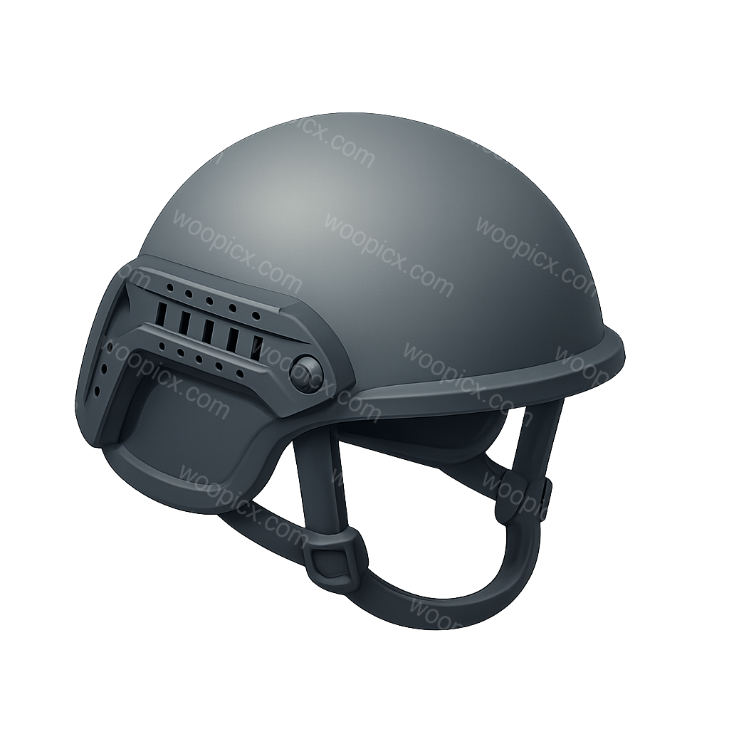 A modern ballistic helmet illustrated in a three-quarter isometric view. The design features a smooth surface with ventilation slots and an adjustable strap, set against a dark gradient background.