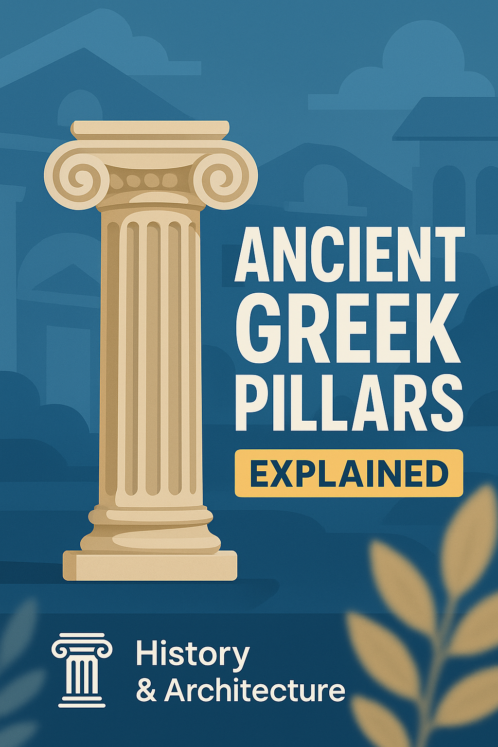 /Collection: /by davooda/Type: PNG/Educational infographic illustrating Ancient Greek pillars with a focus on history and architecture. The design features a prominent pillar against a blue background, making it visually appealing for students and history enthusiasts.