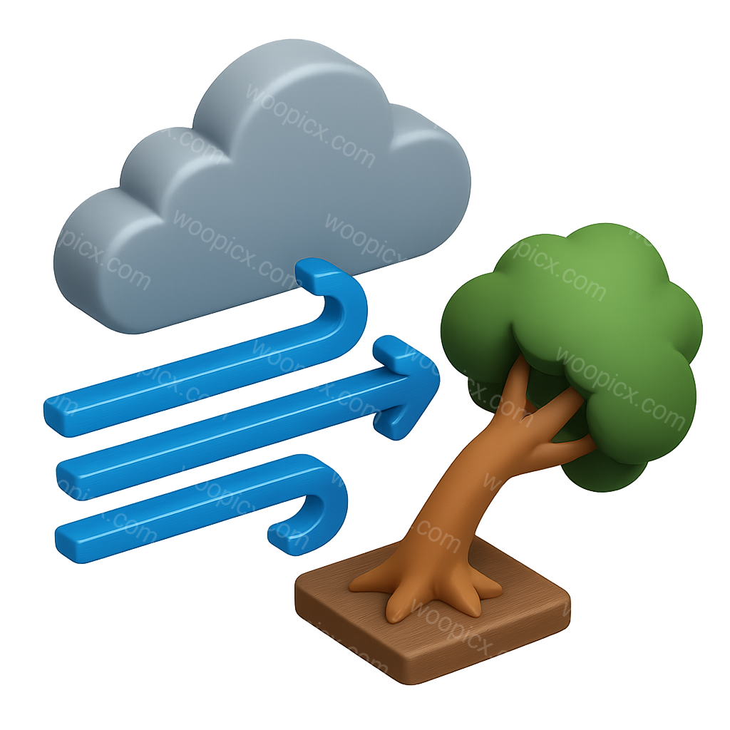 A stylized representation of weather elements including a cloud, wind, and a tree, ideal for environmental or educational themes.