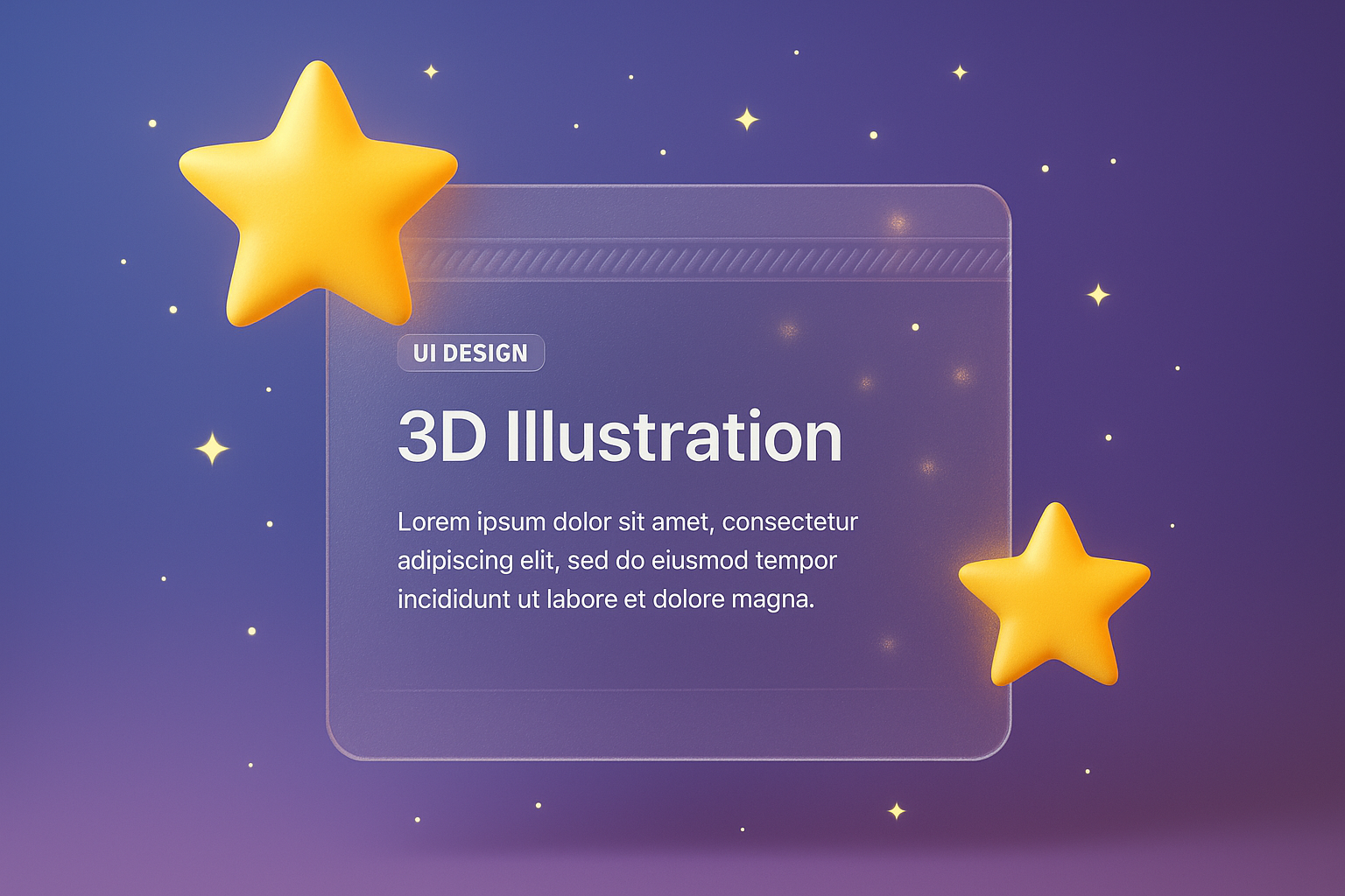 A vibrant depiction of glowing stars set against a smooth gradient background, featuring a transparent UI block with design elements. The stars add depth and a cosmic feel.