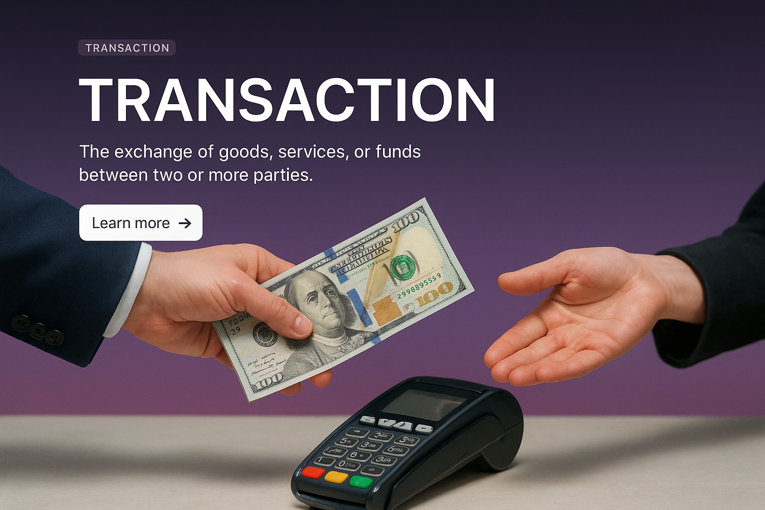 A realistic web design featuring a transaction theme with hands exchanging money. Clear text and action button create a cohesive layout.