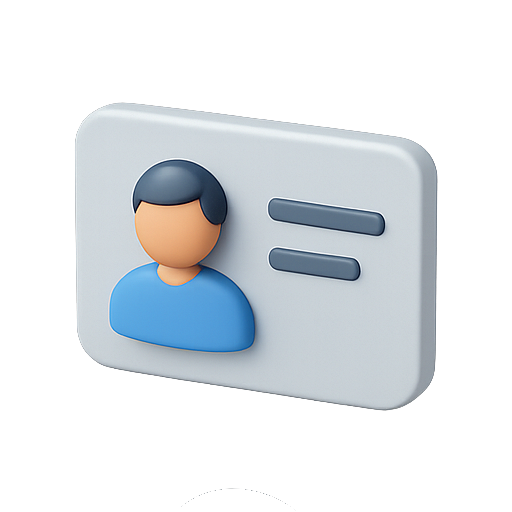 A modern graphic representation of a user identification card with a simplified avatar and placeholder fields. Ideal for user profile interfaces and digital identity applications.