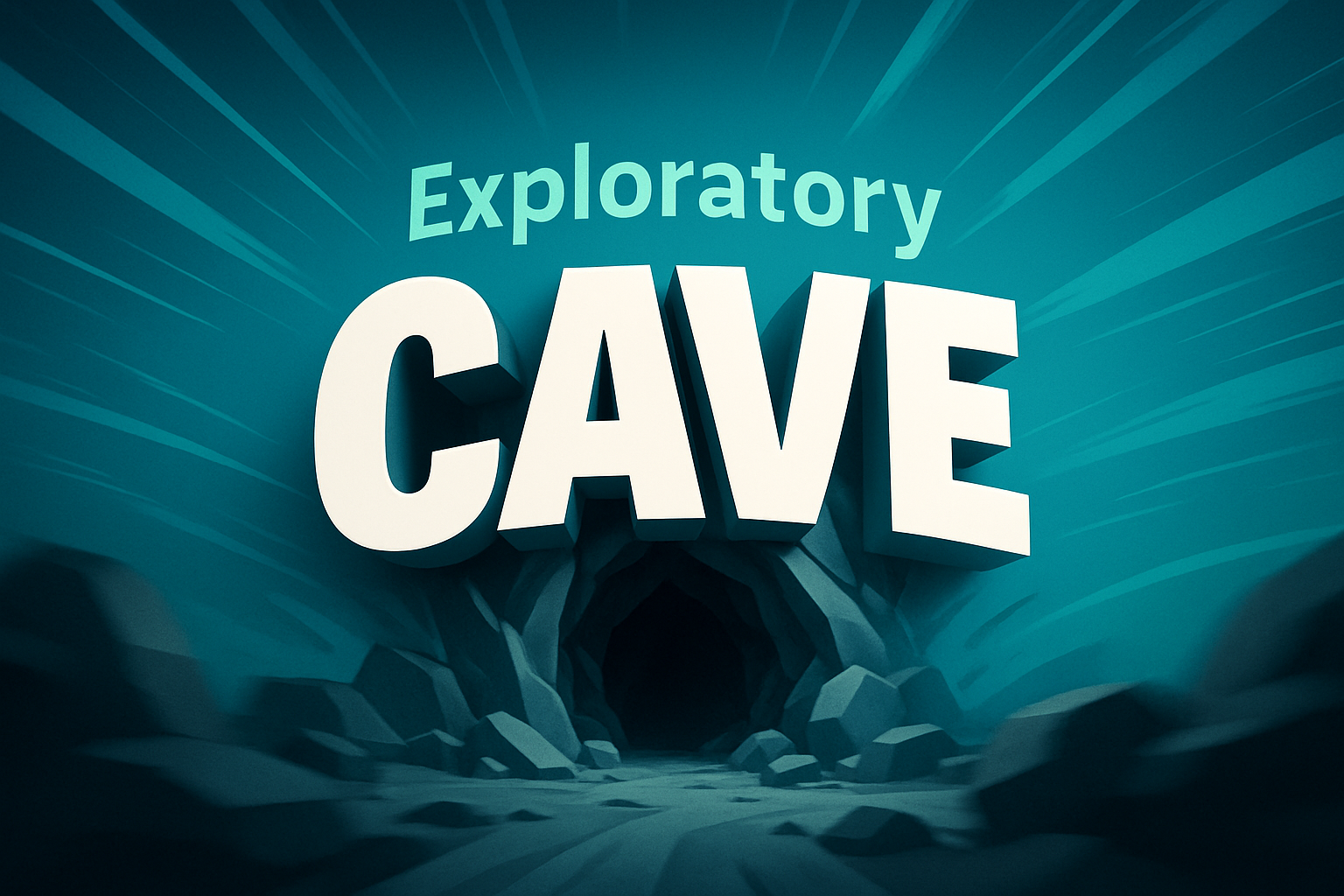 A visually striking illustration of a cave with dynamic lines radiating from the center. The title 'CAVE' is prominently displayed in a bold font, enhancing the adventurous theme.