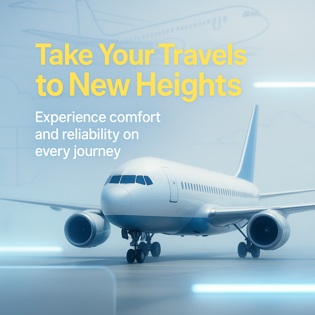 Stylish promotional graphic highlighting air travel services with a modern airplane visual, suitable for marketing campaigns targeting travelers.