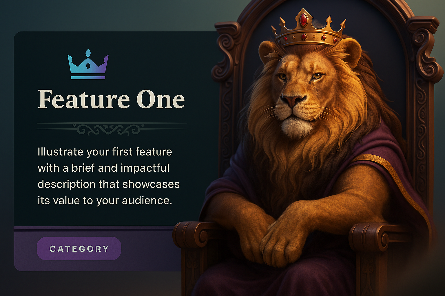 A regal lion sits majestically on a richly adorned throne, showcasing its powerful presence. The background features a smooth gradient, enhancing the grandeur of the scene.