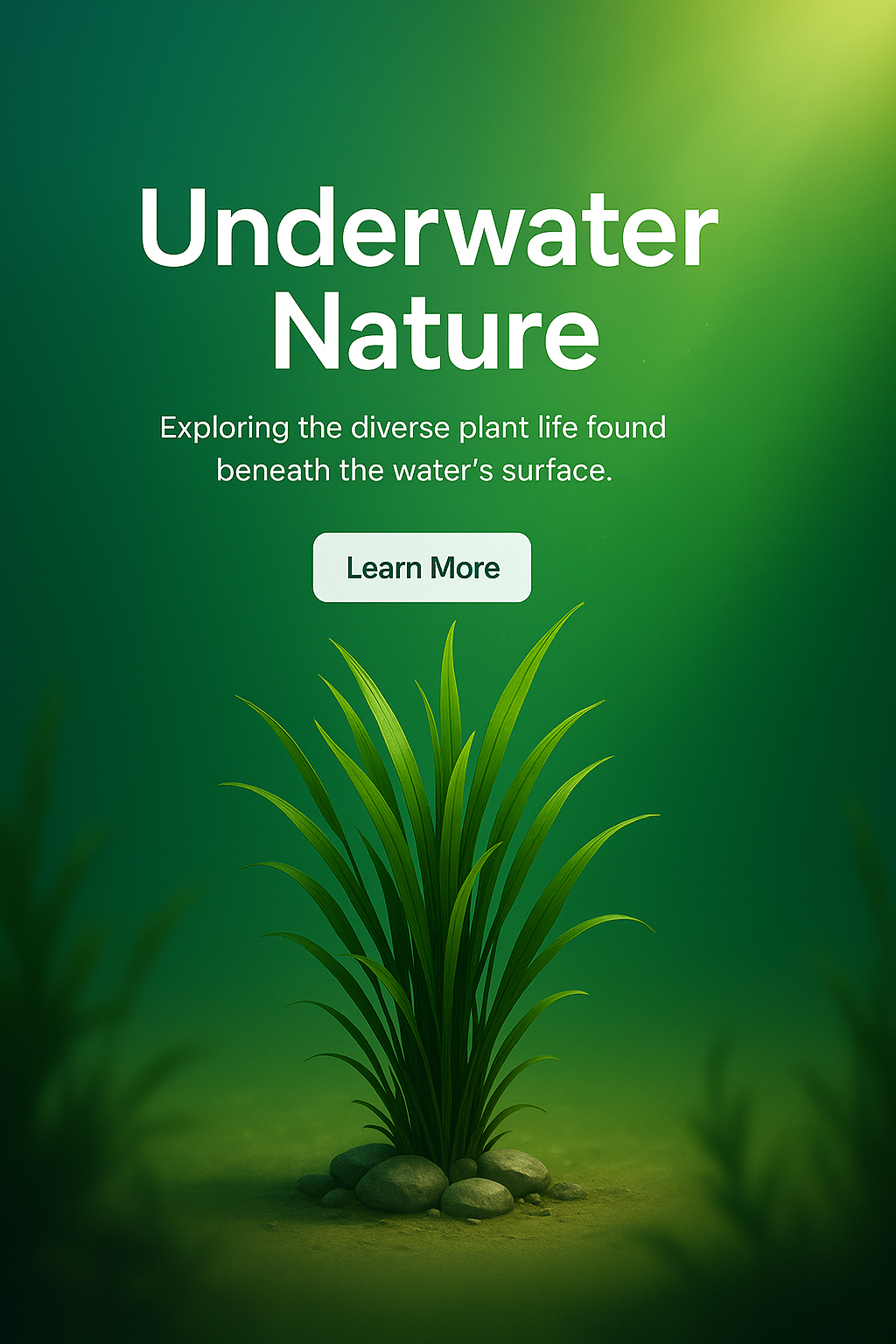 /Collection: /by davooda/Type: PNG/This is a vibrant digital illustration showcasing underwater plant life. It features lush green aquatic plants against a serene blue-green backdrop, ideal for educational or informational content.