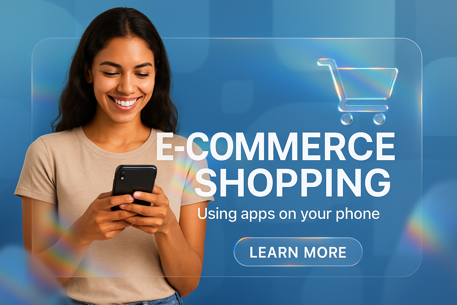 E-commerce Shopping Promotional Graphic Featuring a Young Woman