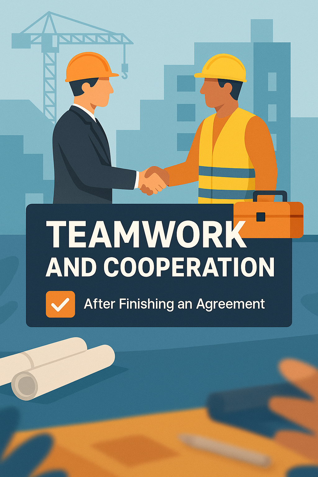 Illustration Representing Teamwork and Cooperation in a Construction Setting