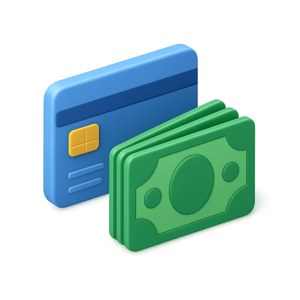Stylized 3D Icons of Credit Card and Cash for Digital Payments
