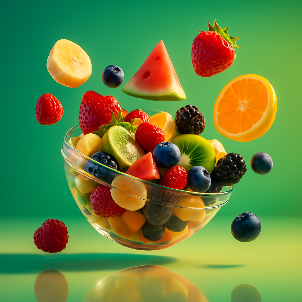Dynamic Fruit Salad Composition with Vibrant Colors