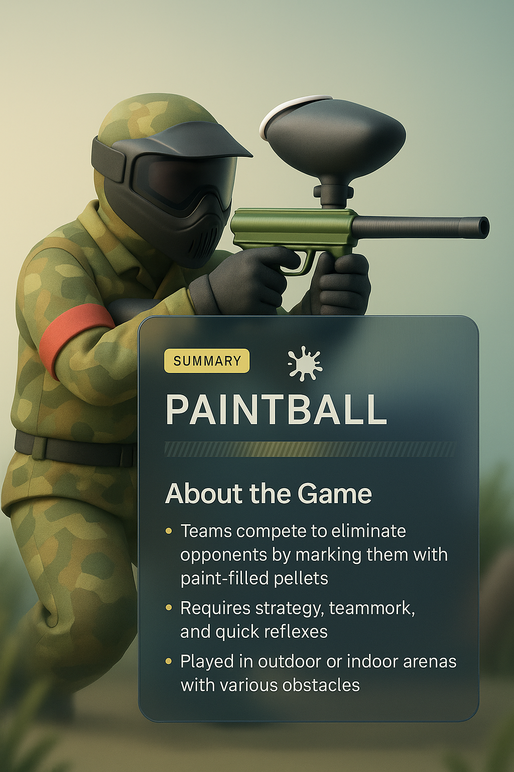 Dynamic Paintball 3D Illustration with Transparent Glass Effect
