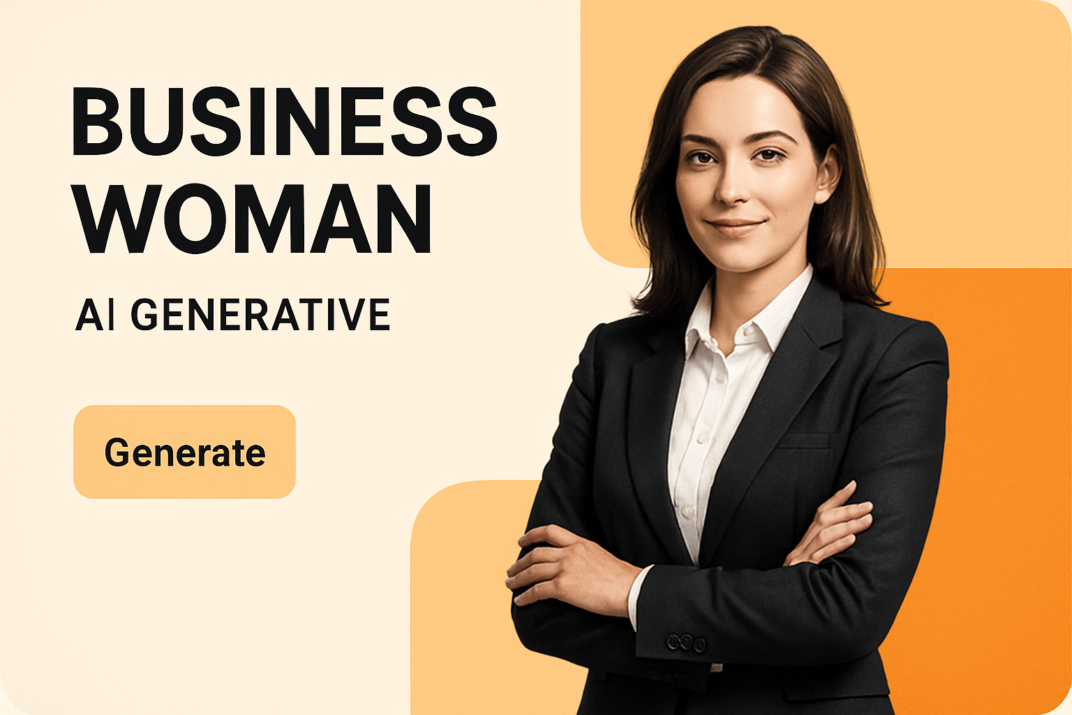 /Collection: /by davooda/Type: PNG/This illustration features a professional business woman in a clean corporate style, set against a bright, geometric background. The composition includes bold typography and a clear call-to-action.