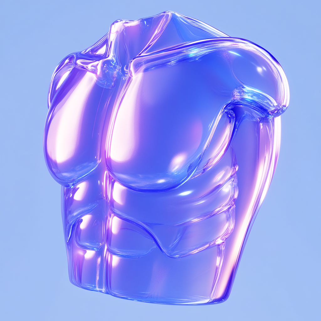 /Collection: /by davooda/Type: PNG/A captivating 3D render showcasing a stylized, transparent torso sculpture with a glossy finish. The design features soft curves and vibrant colors that evoke a sense of modernity, ideal for art displays or digital design projects.