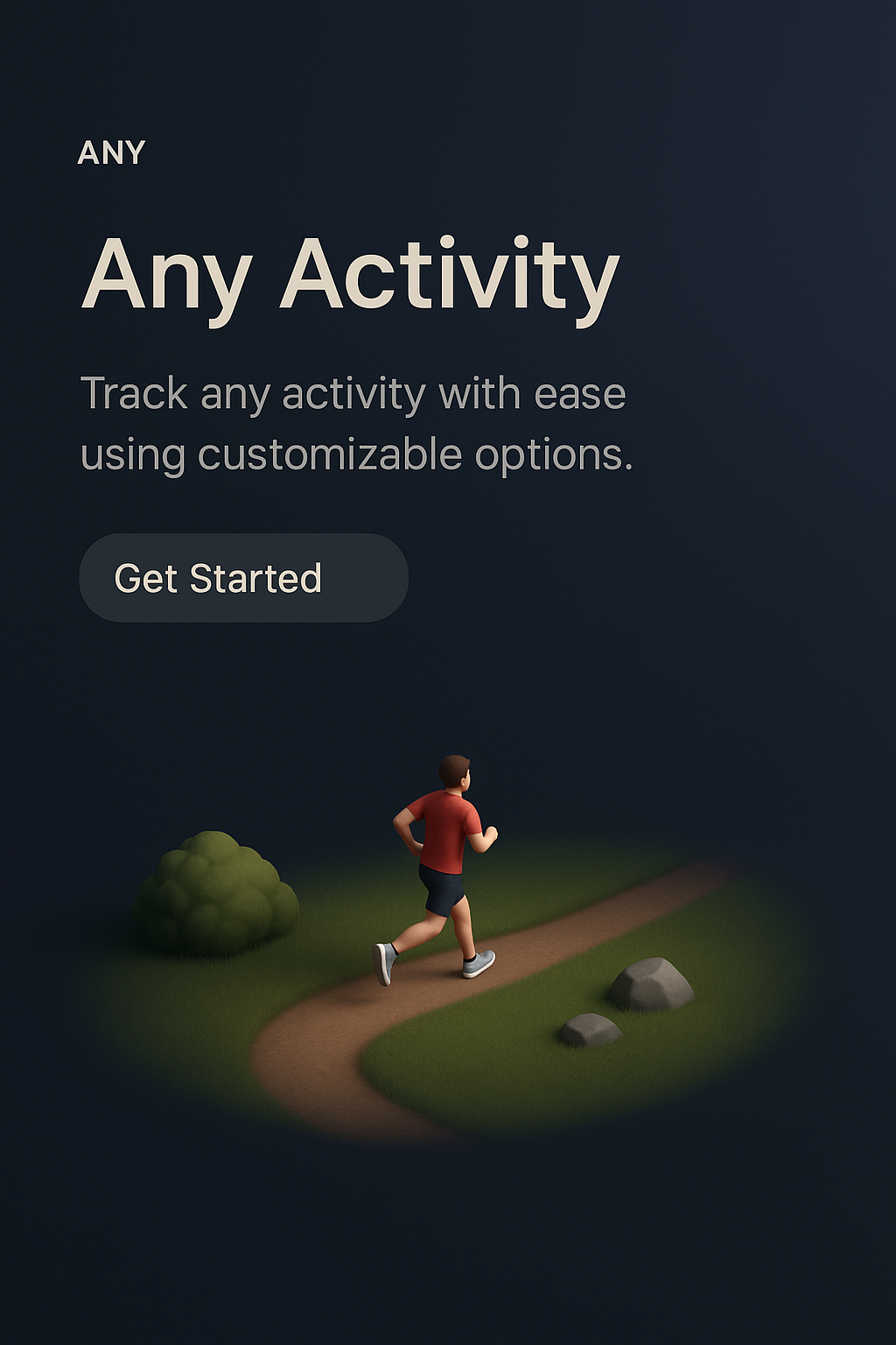 A modern design showcasing a runner on a path, emphasizing ease of tracking various activities with customizable features.