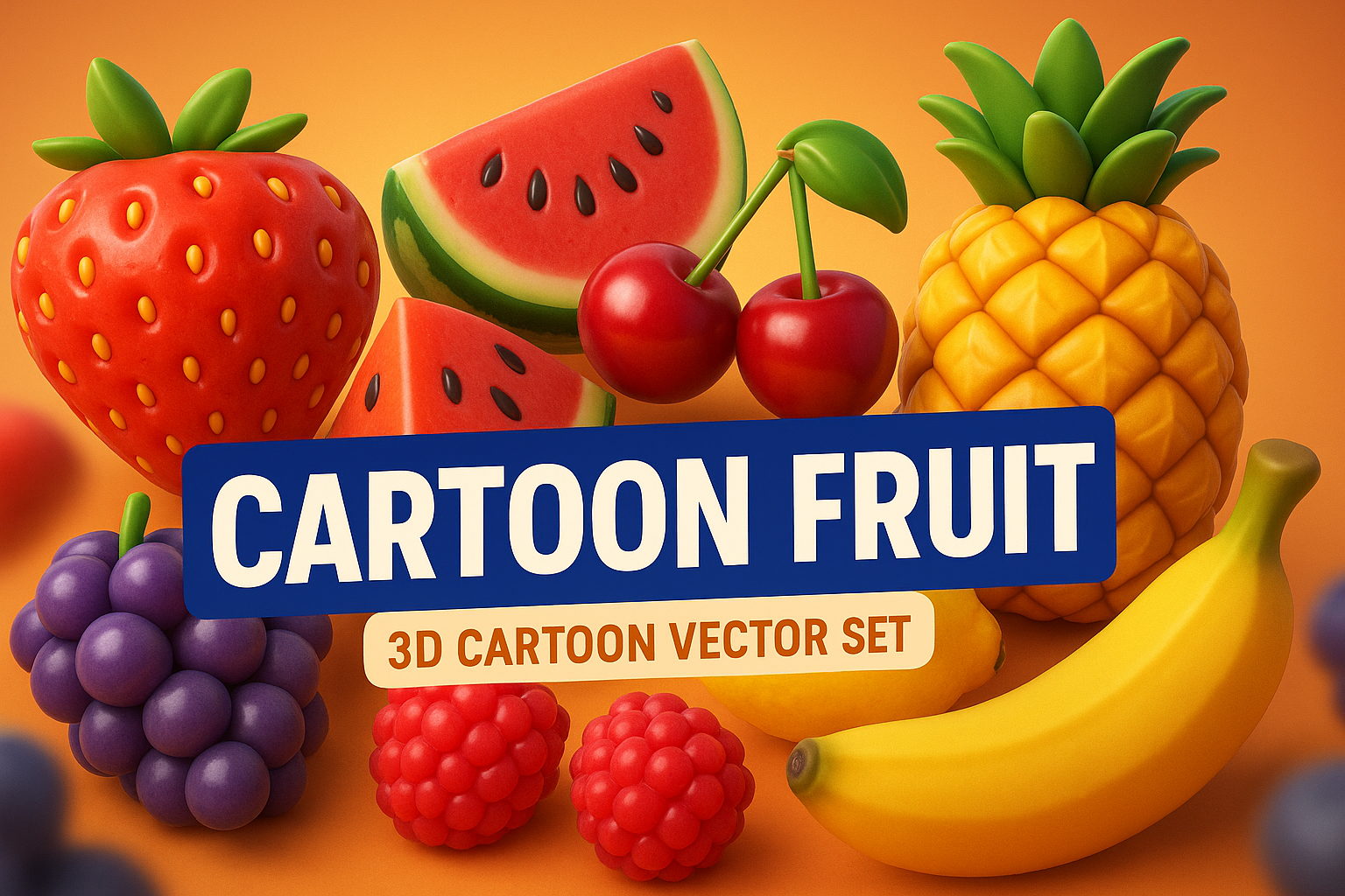 Colorful 3D Cartoon Fruit Vector Set with Playful Design
