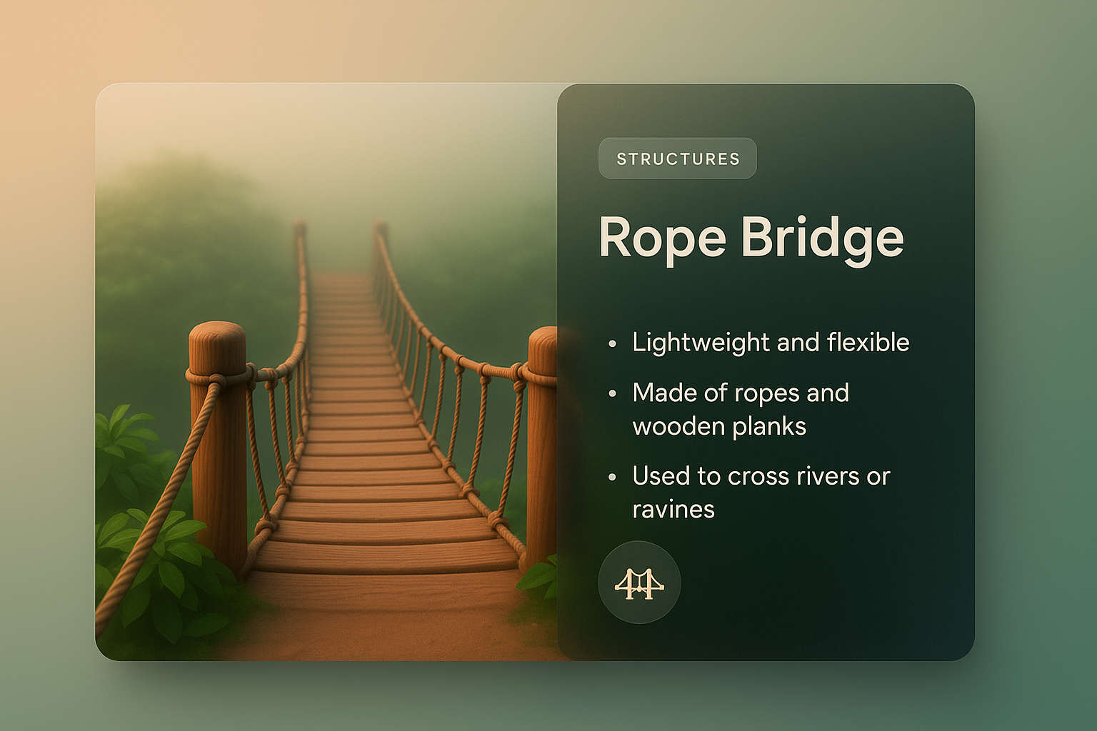 /Collection: /by davooda/Type: PNG/A beautifully rendered 3D illustration of a rope bridge, set against a foggy background. The bridge features wooden planks and rope, showcasing its flexibility and design.