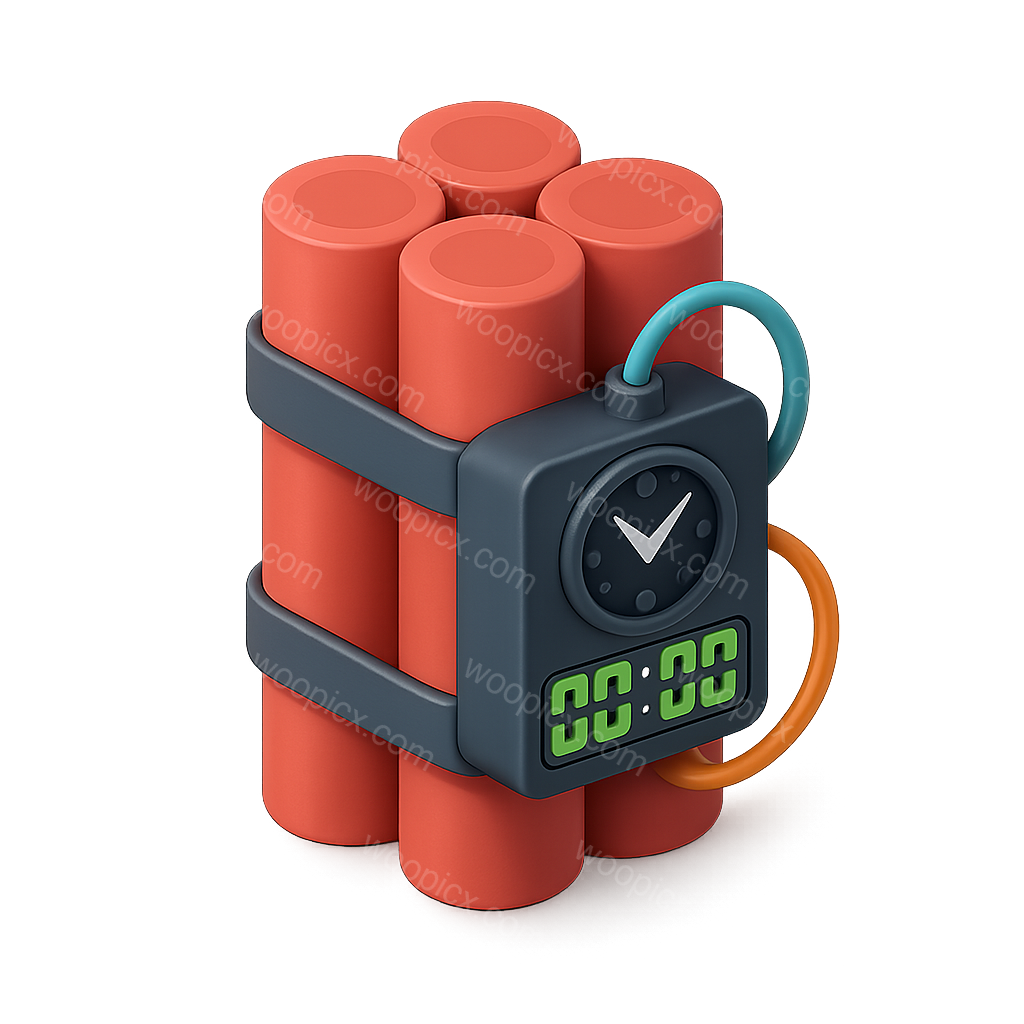 A stylized 3D icon of a bundle of explosives featuring a digital timer, presented in a three-quarter view with a transparent background. The design is vibrant and volumetric.