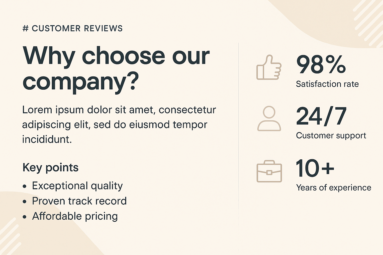 Informative infographic showcasing customer satisfaction and key company benefits, designed for promotional use to enhance trust and credibility.