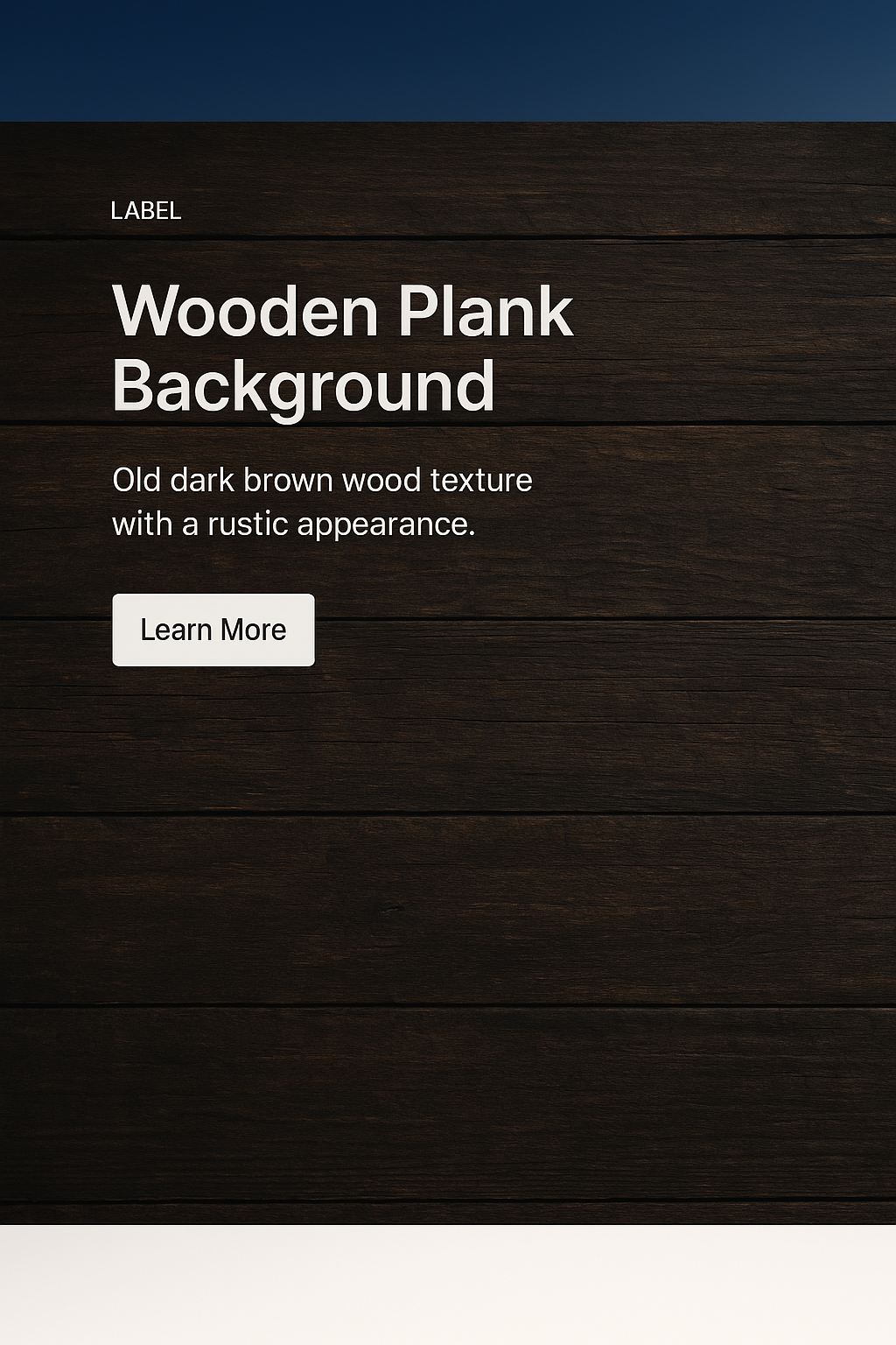 A dark brown wooden plank background showcasing a rustic texture, ideal for web design. Features a clean layout with a label, title, and action button.