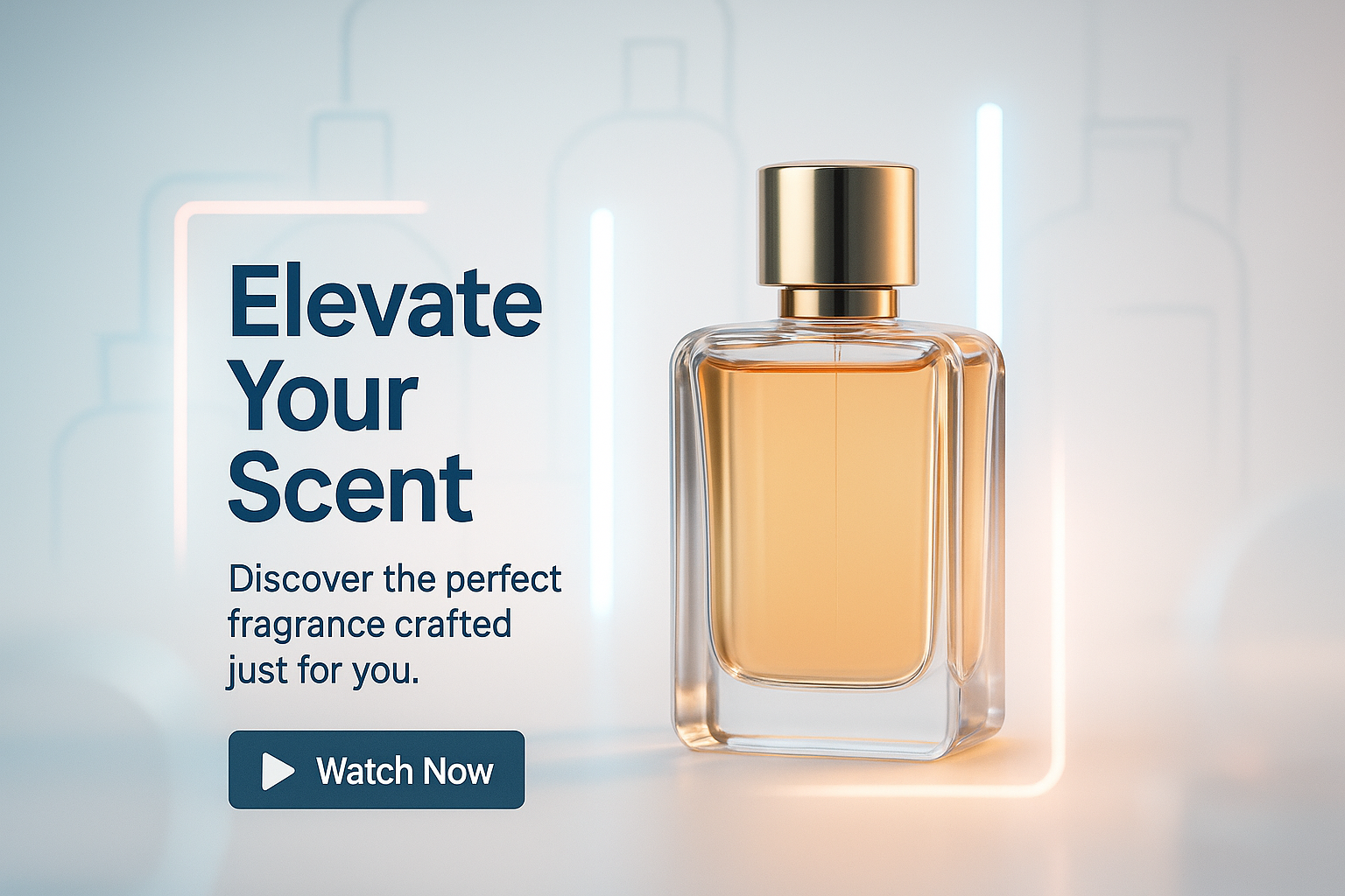 Elegant Fragrance Advertisement Featuring Modern Perfume Bottle