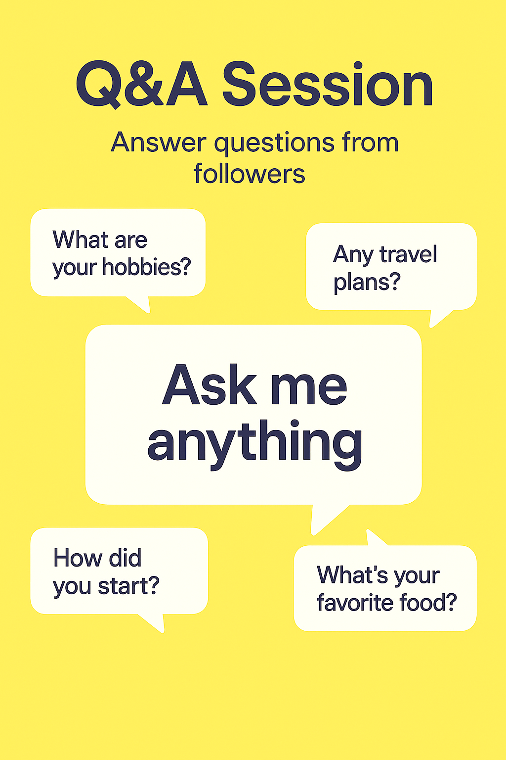 Vibrant social media post inviting followers to participate in a Q&A session, featuring a bright yellow background and speech bubble design elements for a friendly interaction.
