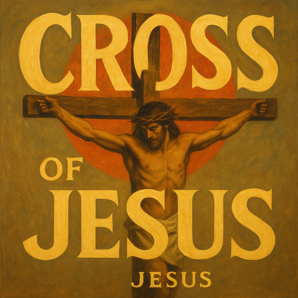/Collection: /by davooda/Type: PNG/A powerful religious artwork portraying the crucifixion of Jesus on the cross, featuring bold typography and warm colors. Suitable for religious contexts and inspirational themes.