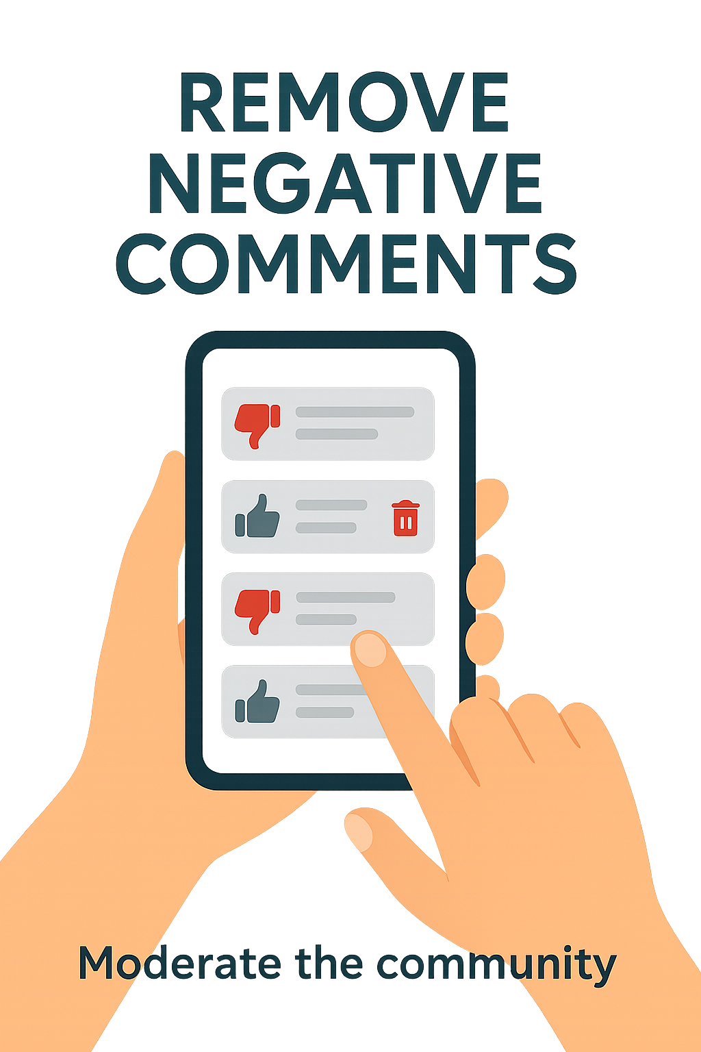 An illustrative graphic focused on the theme of moderating online comments, featuring a smartphone display with negative feedback icons. Ideal for community management discussions.