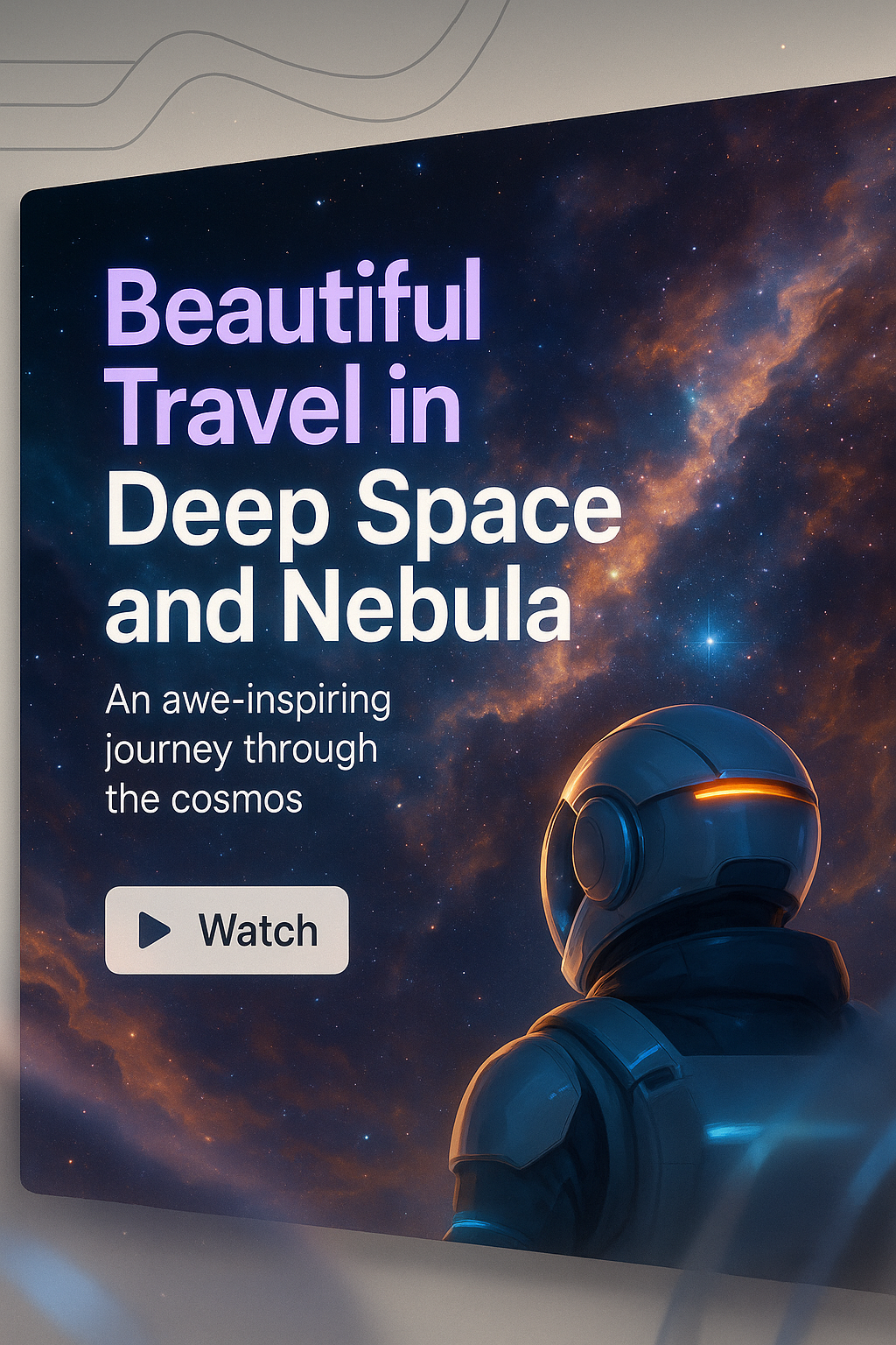 /Collection: /by davooda/Type: PNG/A visually captivating promotional graphic showcasing deep space and nebula themes, ideal for travel or science-related content. The design features a sleek astronaut and cosmic elements, perfect for engaging audiences interested in space exploration.