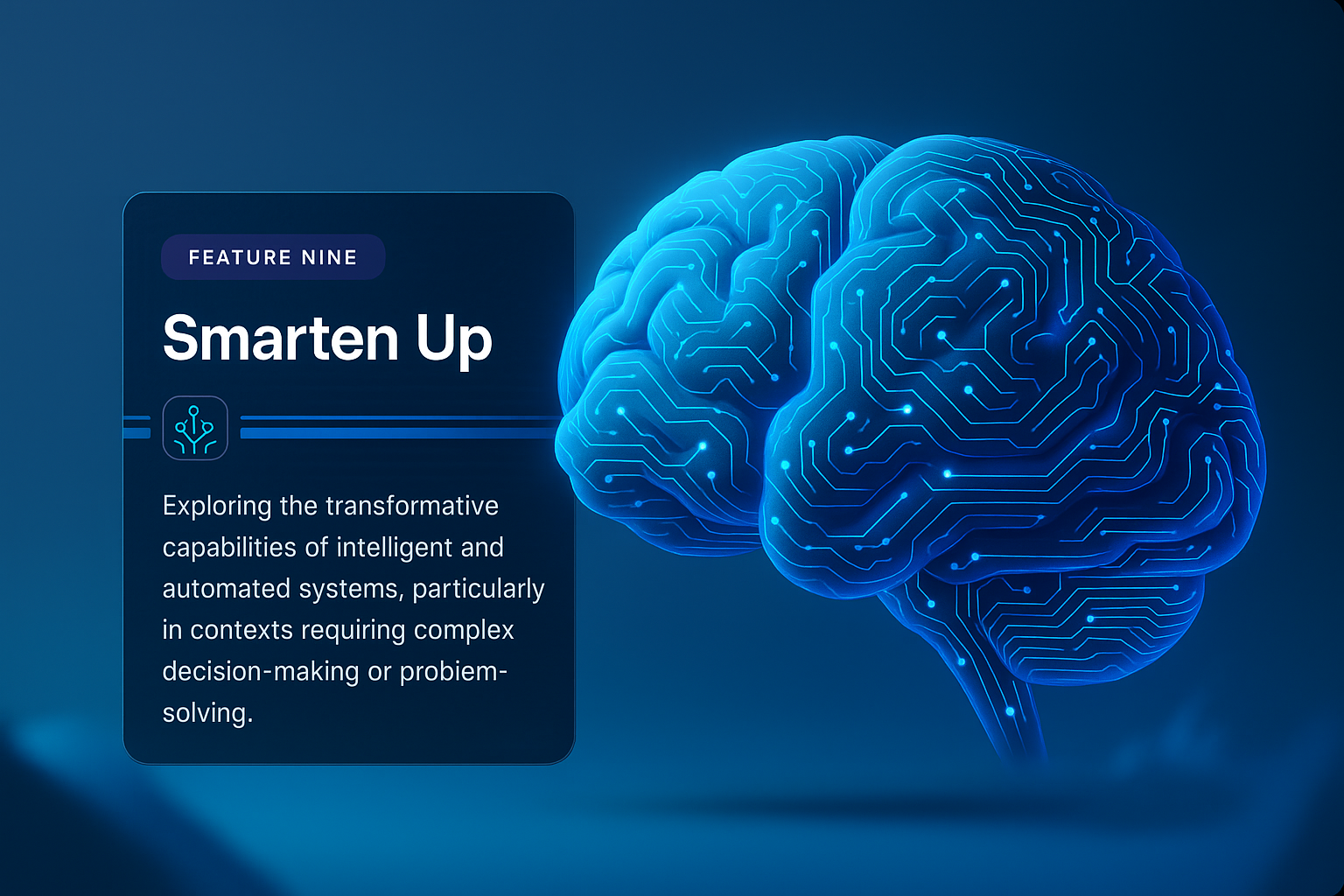 /Collection: /by davooda/Type: PNG/A 3D illustration of a human brain showcasing neural network patterns, symbolizing intelligent processing and big data integration. The design features a sleek gradient background and a highlighted feature box.