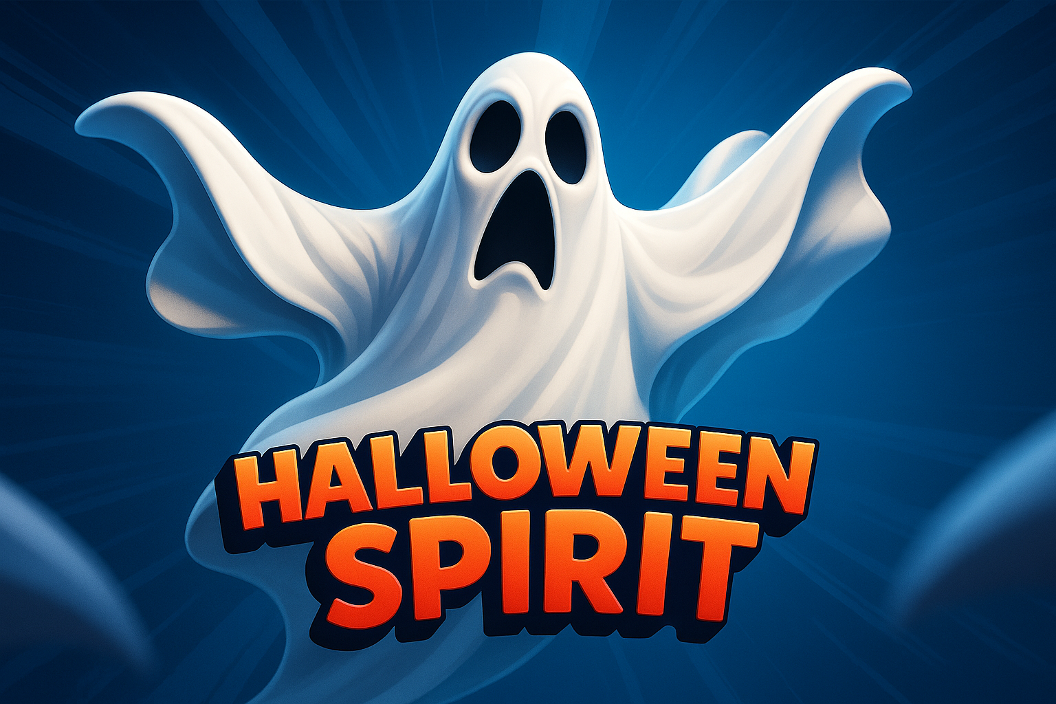 Dynamic Halloween Ghost Illustration with Bold Typography