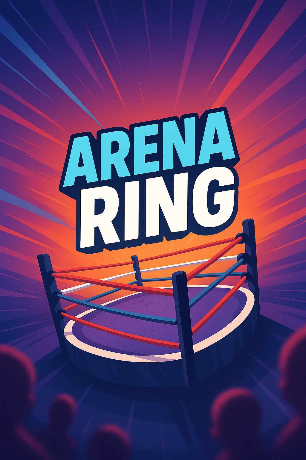 A vibrant illustration of an arena ring featuring bold typography. The background transitions from a gradient to a solid color, with dynamic rays radiating outward, enhancing the energetic feel.