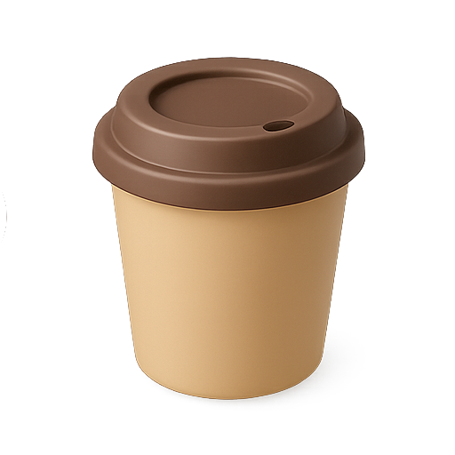 Realistic 3D mockup of a takeaway coffee cup featuring a brown lid and a simple design, ideal for branding or product presentation in the food and beverage industry.