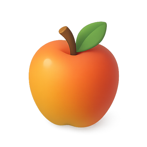 Stylized 3D Apricot Icon with Leaf and Stem