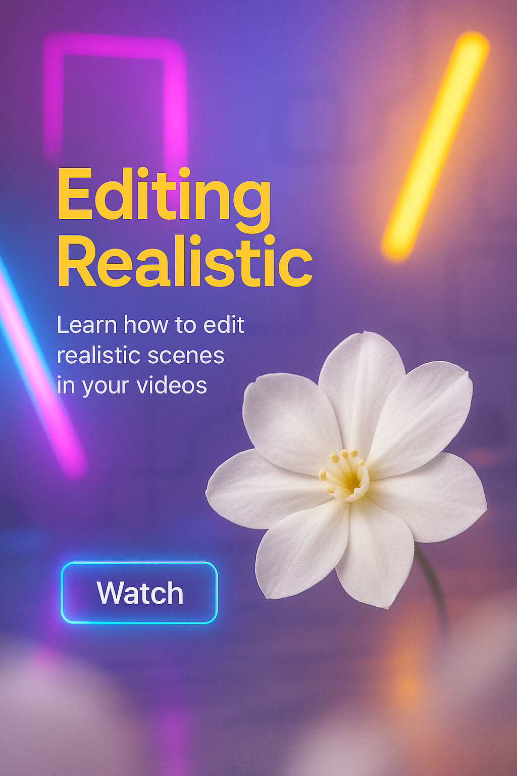 Engaging promotional image for a video editing tutorial featuring a flower and vibrant neon lights, suitable for social media or online courses.