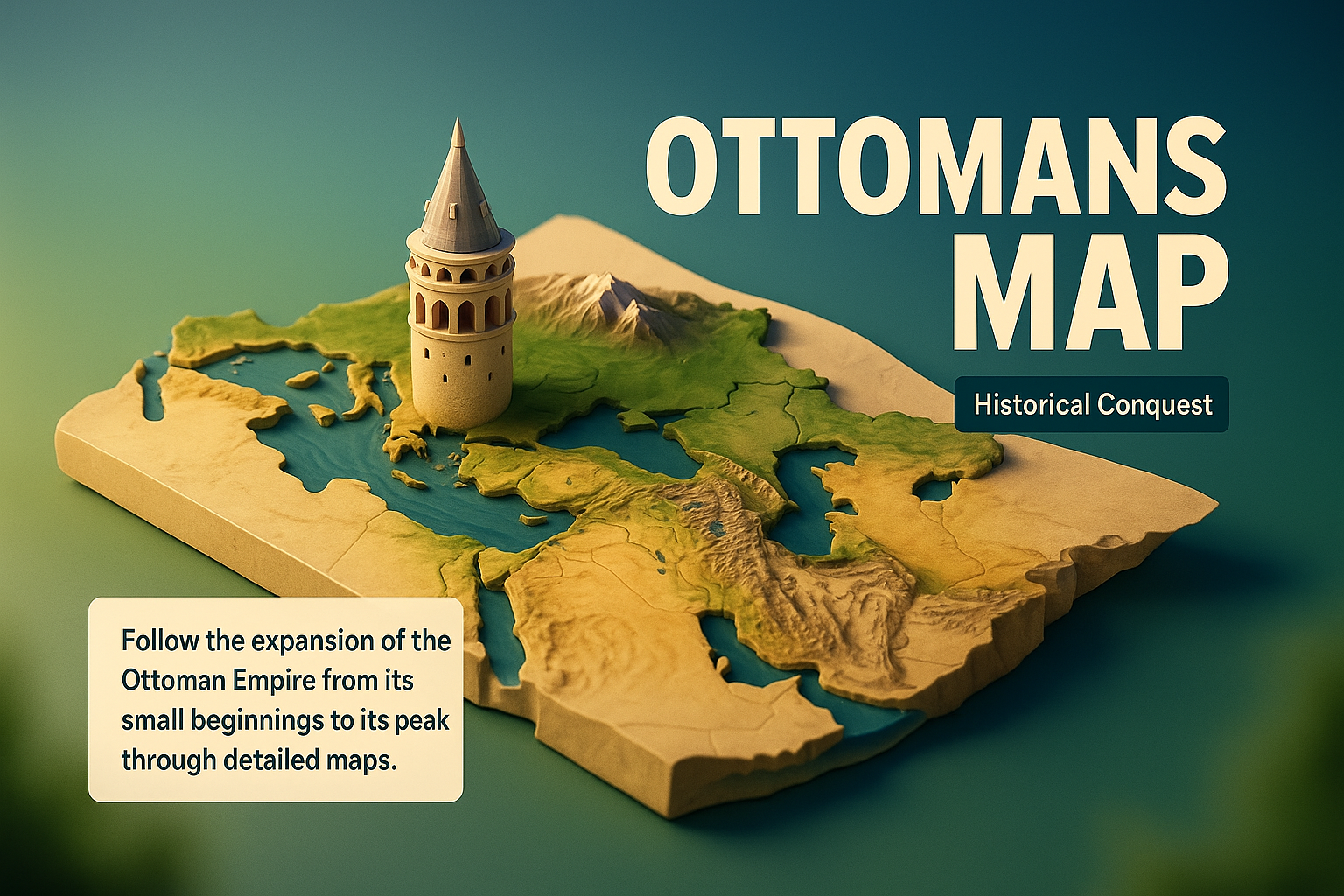 3D Illustration of the Ottoman Empire Map with Historical Context