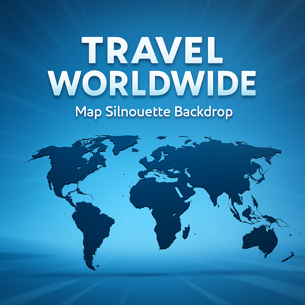 /Collection: /by davooda/Type: PNG/This image features a blue backdrop with a silhouette of the world map, ideal for travel-related graphics or presentations. Its clean design is suitable for various digital and print uses.