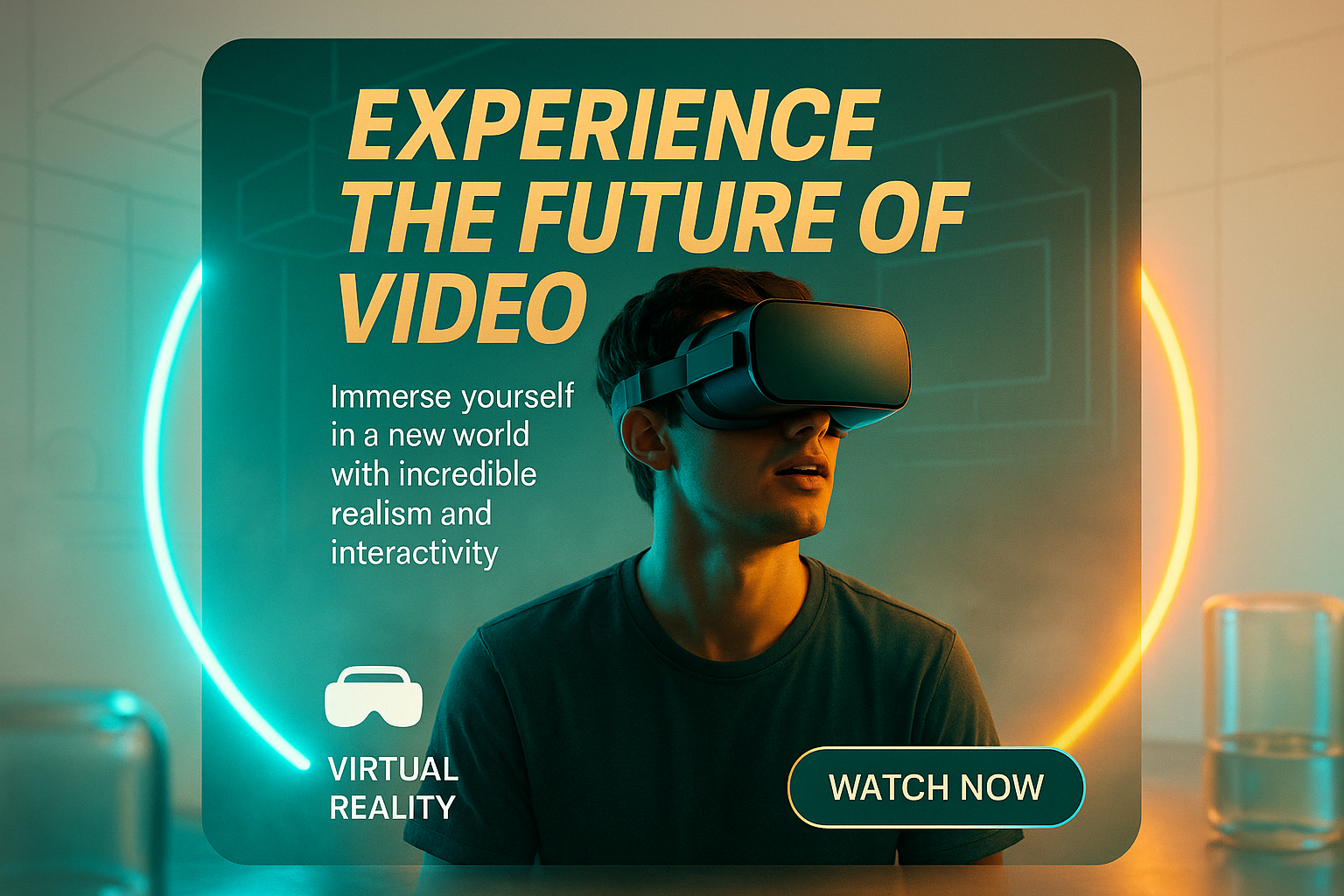 Engaging promotional banner showcasing a virtual reality theme with a modern aesthetic, aimed at enticing viewers to explore immersive video experiences.