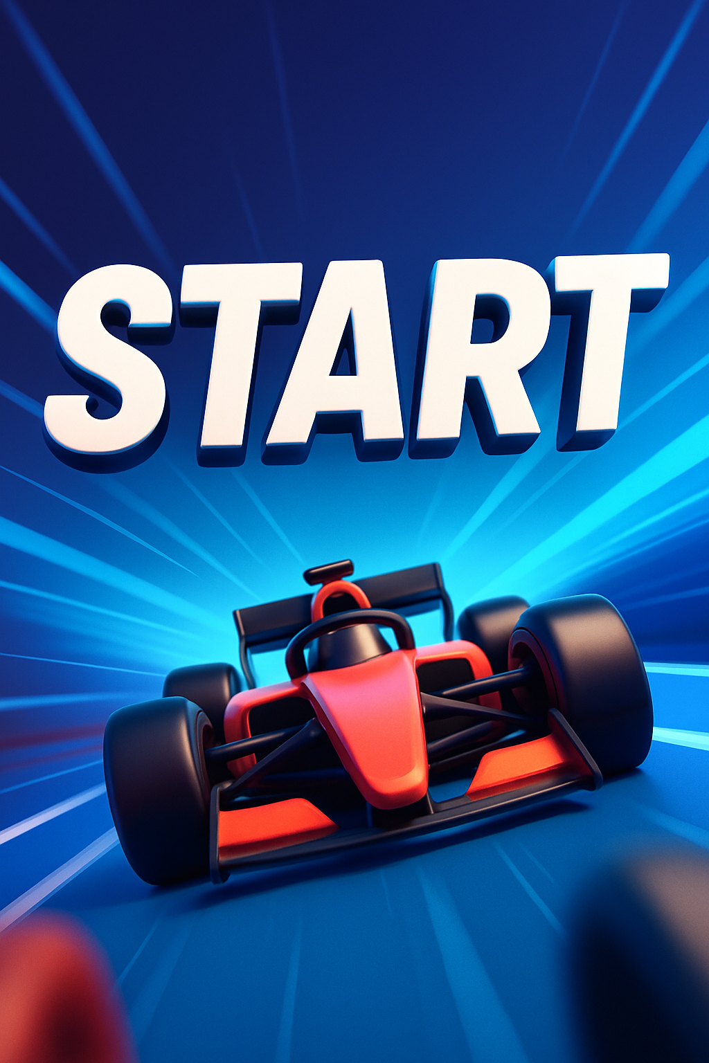 /Collection: /by davooda/Type: PNG/A vibrant 3D illustration featuring a racing car and the word 'START' in bold, dynamic lettering, set against a smooth gradient background. The composition exudes energy and excitement.