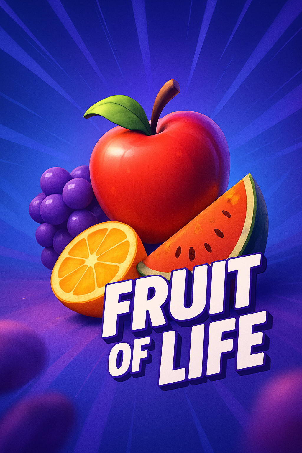 Vibrant Dynamic Composition of Fruit Symbols Representing Life
