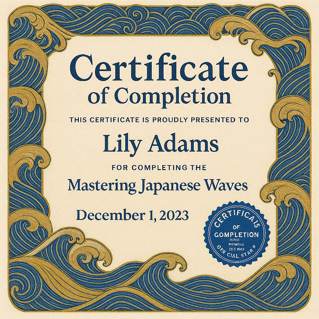 Certificate of Completion Design Featuring Japanese Waves