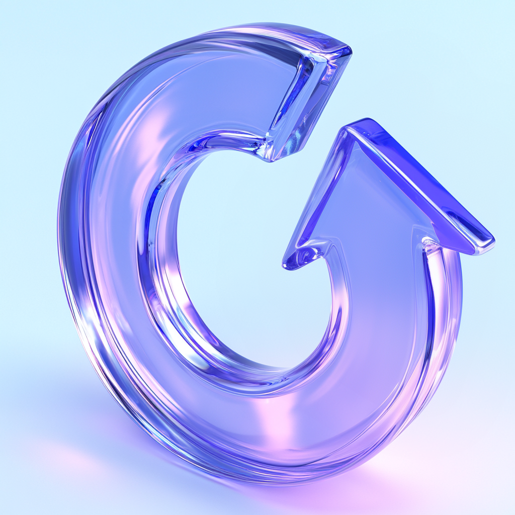 A modern 3D refresh icon designed with a glossy gradient finish, perfect for digital applications and user interfaces. The sleek, rounded shape adds a contemporary touch.