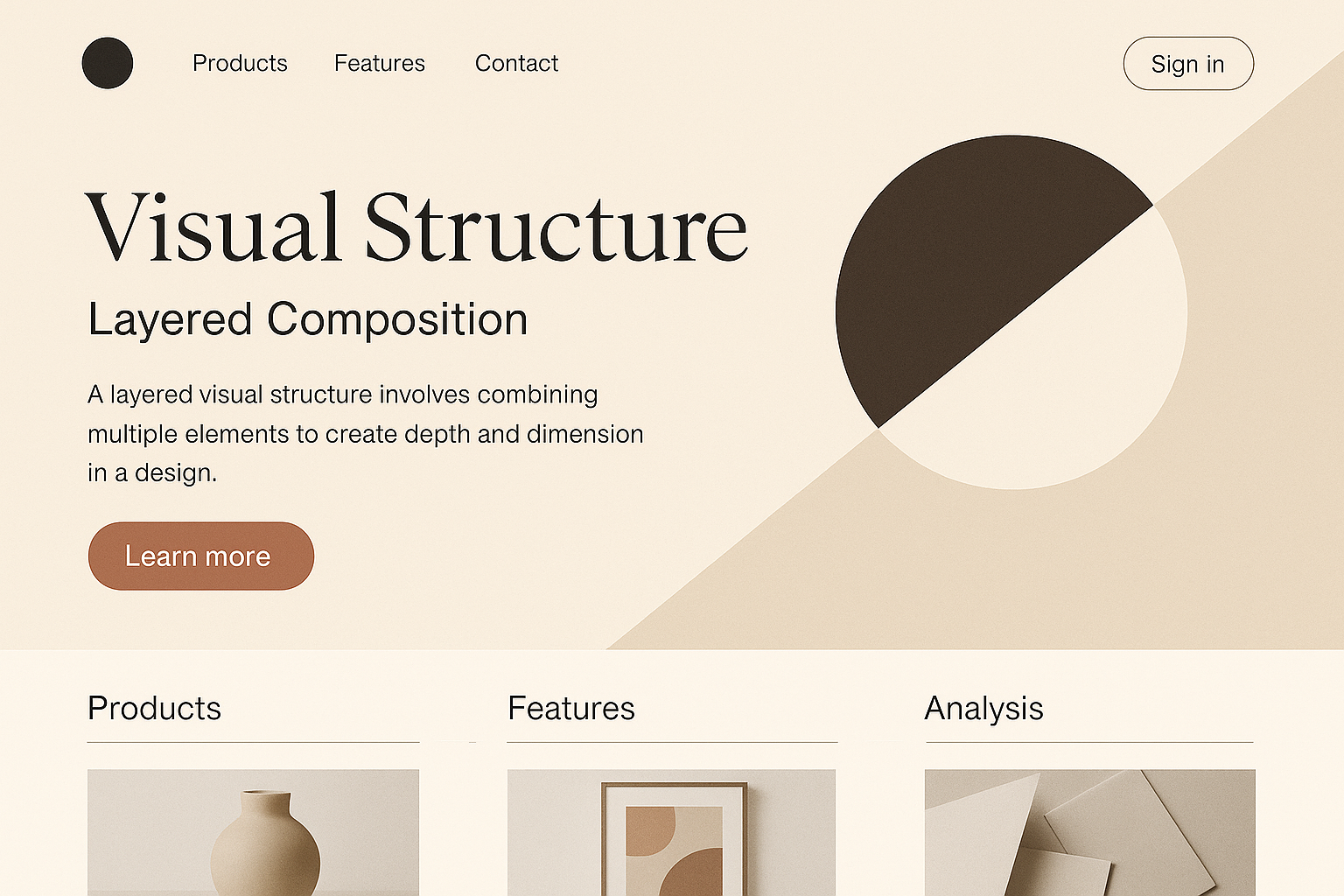 /Collection: /by davooda/Type: PNG/A visually appealing landing page design featuring a layered composition. It includes headings, action buttons, and sections for products and features, all in a sophisticated color scheme.